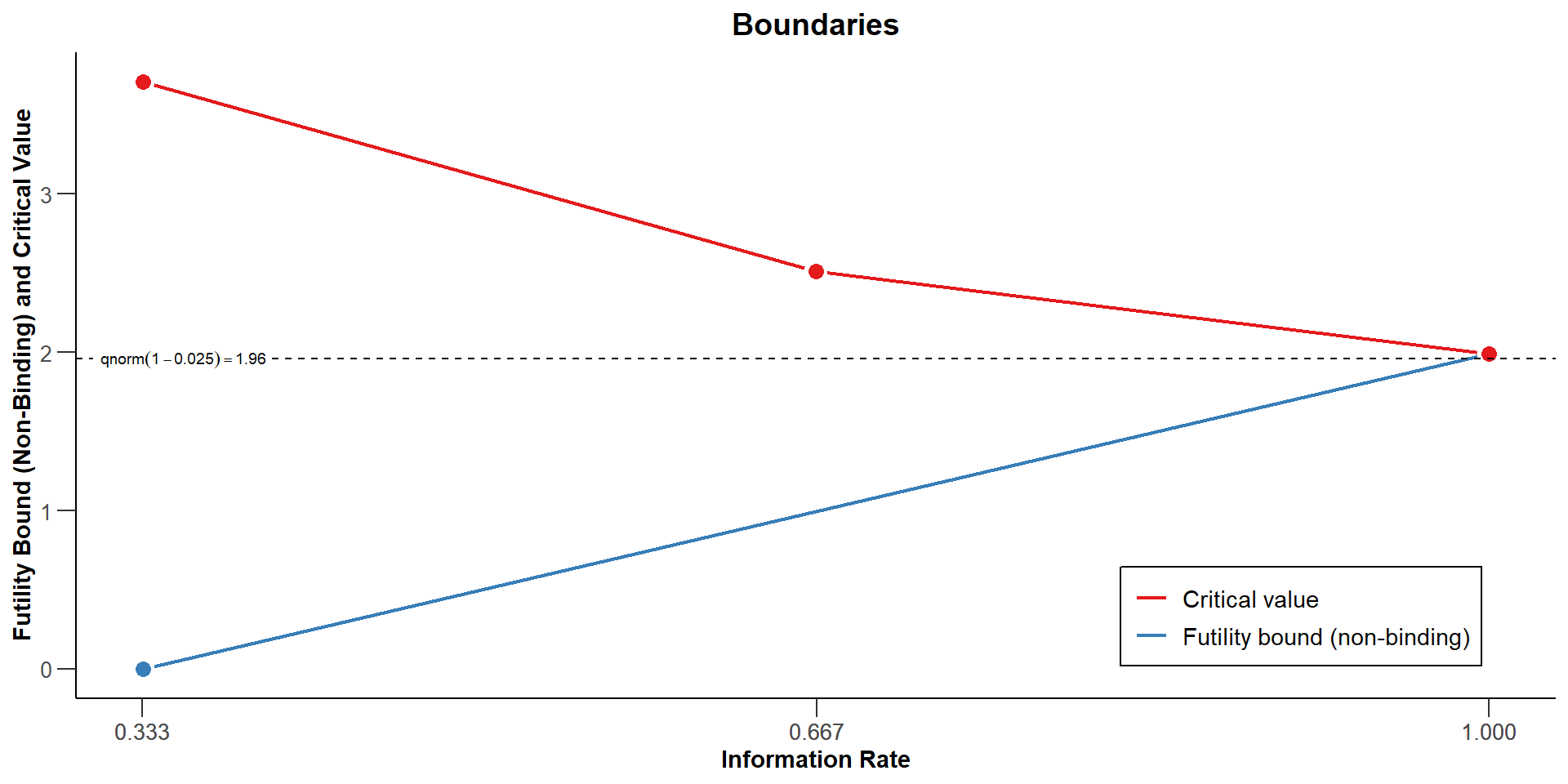 | Futility boundary (z-value scale) | 0 | -Inf | |