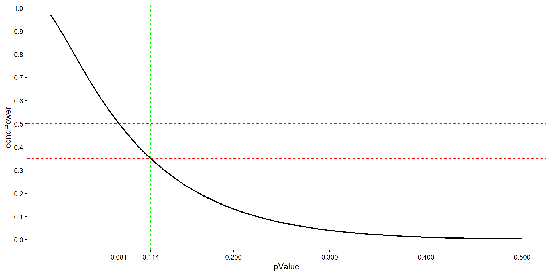 getFutilityBounds()Example: Conditional power at observed effect → p