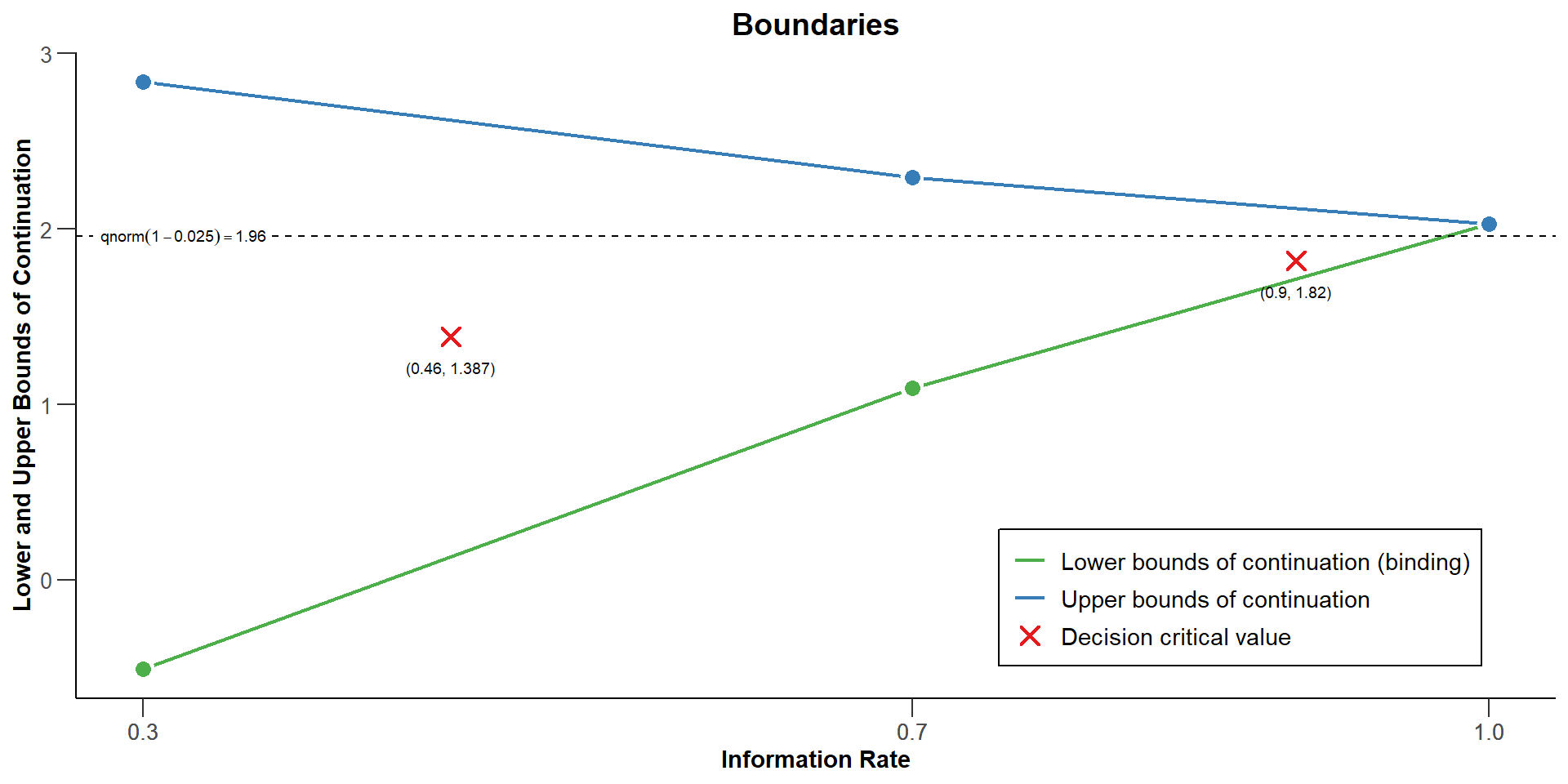 | Futility boundary (z-value scale) | -0.001 | -Inf | |